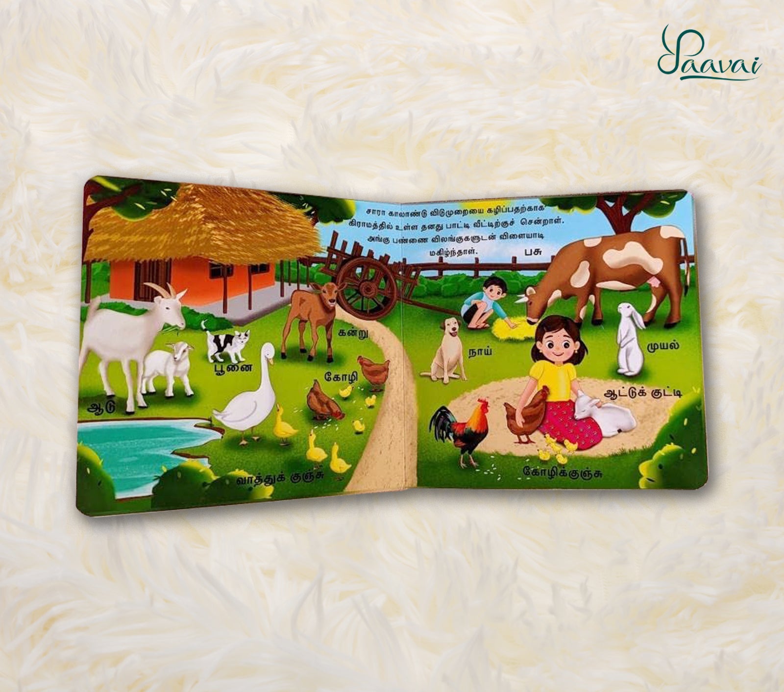 ๐ ๐ย Join Sara on a heartwarming journey to her ancestral village๐พ in Gramathu Payanam! ๐๏ธ This delightful children's book follows Sara's adventures during her school break, filled with new experiences and vibrant encounters. Perfect for young readers, it introduces basic Tamil vocabulary for animals ๐, fruits ๐, vegetables ๐ฅ, colors ๐จ, vehicles ๐, and family relationships ๐จ๐ฉ๐ง in a fun, engaging way. A charming tale that celebrates culture and discovery! ๐